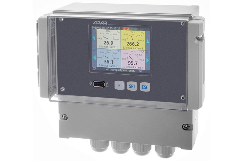 Built-in web server with status of measurements, outputs, recording, diagrams and mail notification